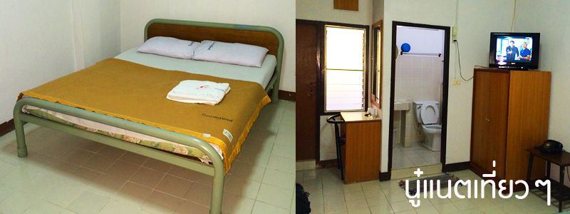 พอถึงโรงแรมก็เอากุญแจห้องไปห้องชั้น 3 คือบอกตรงๆ กลัวผี ห้องน่ากลัวมาก เตียงก็น่ากลัว ห้องน้ำอยู่ปลายเตียง โทรศัพท์ก็แบบหมุน แต่มีทีวี แอร์ไม่น่ามีเพราะห้องถูกสุด แต่อากาศก็หน้าหนาวก็อยู่ได้สบายดีมีพัดลม มีระเบียงด้วยแต่ไม่คิดจะออกไป
