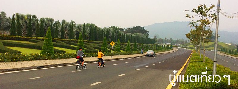 ก็ Check-out ออกมาตอนเกือบ 8 โมงเช้า ตอนแรกอยากเลียนแบบคนอื่นคือโบกรถ แต่ไม่มีคนจอด เลยรอๆ จนมีสองแถวผ่านมา ก็ต้องถามอีกว่าไปถึง "อุทยานหลวงราชพฤกษ์" รึเปล่า ปรากฏก็ไปถึง