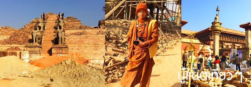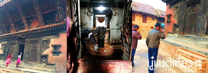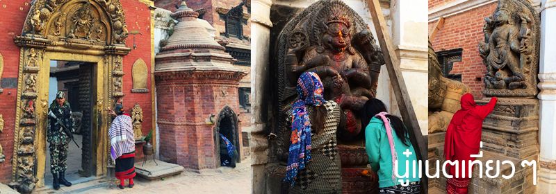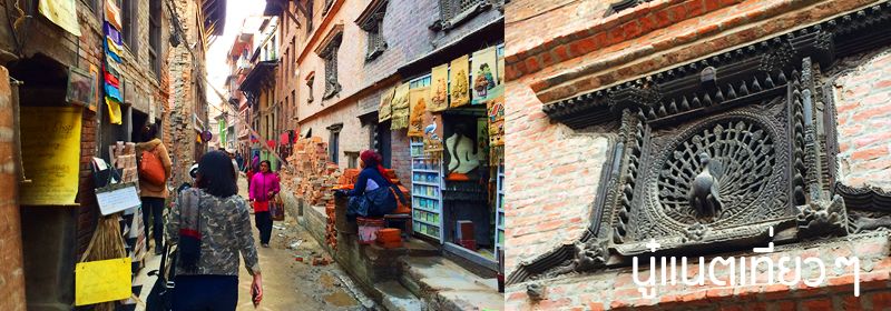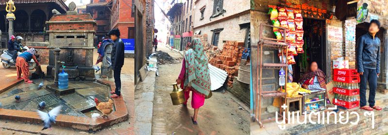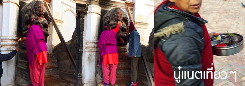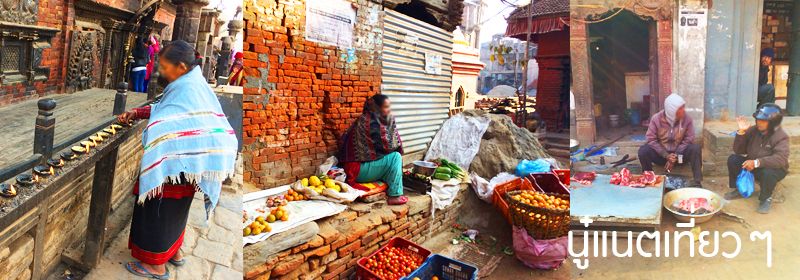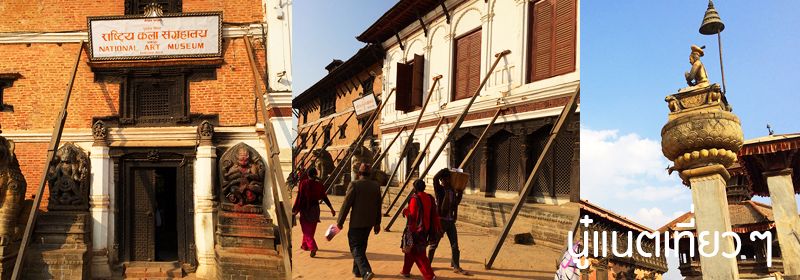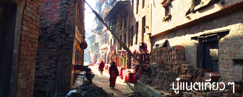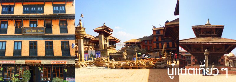 ทานข้าวเสร็จก็ออกเดินสำรวจเมืองกันต่อ สำรวจแถวๆ ที่พักเรานี่แหละ อยู่ตรง "Bhaktapur Durbar Square" แต่โบราณสถานตรงนี้ก็พังลงมาเยอะเหมือนกัน ถ้าไม่พังก็มีไม้ค้ำยันไว้