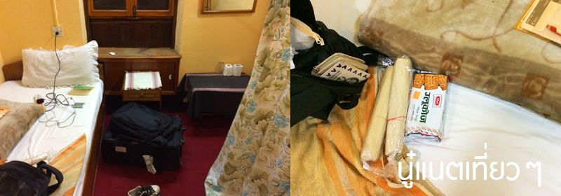 ดูชั้น 1 ก็ขึ้นไปชั้น 2 ตอนแรกคิดว่าพี่เขาพักห้องที่เคยส่งรูปให้เราดู ที่เป็นห้องใหญ่ เห็นวิวเมืองสวยๆ ห้องละ 1,600 บาทแต่ไม่ใช่ เป็นห้องเล็กที่ทึบๆ มืดๆ คือตอนที่พี่เขาส่งรูปมาเป็นห้องใหญ่ เราไม่แน่ใจว่าพี่เขาอยากอยู่คนเดียวหรือเปล่า หรือจะหาร เราก็มองห้องเล็กที่โรงแรมนี้เหมือนกันจะได้อยู่ที่เดียวกัน ราคาในเว็บคือคืนละ 800 บาท (มั้ง) แต่ดูแล้วทั้งทึบทั้งมืด เราไปเอาห้องราคา 300 กว่าบาทดีกว่าแต่ห้องพี่เขาก็ห้องน้ำในตัวและห้องใหญ่กว่านั่นแหละ