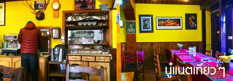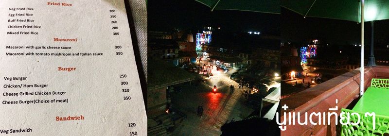 ร้านที่เรามาทาน ดูจากเมนู ราคาอาหารไม่แพง คิดง่ายๆ ไม่เอาเศษ คือ 100 รูปีเนปาล คือ 1 ดอลล่าร์สหรัฐ อย่างสั่งข้าวผัดก็แพงกว่าร้านข้างทางของเมืองไทยนิดหน่อย