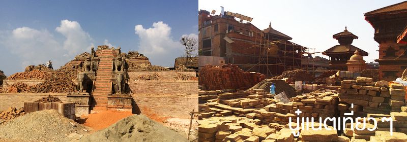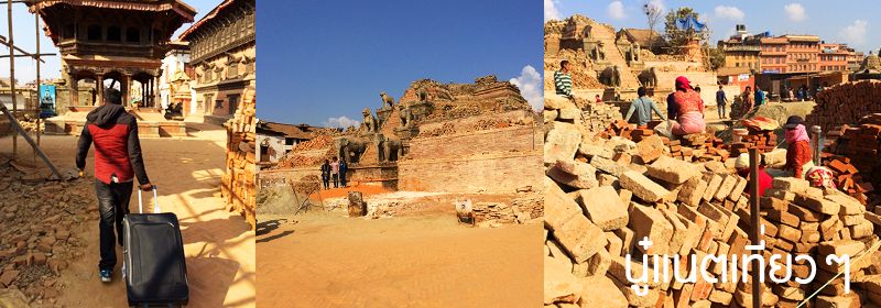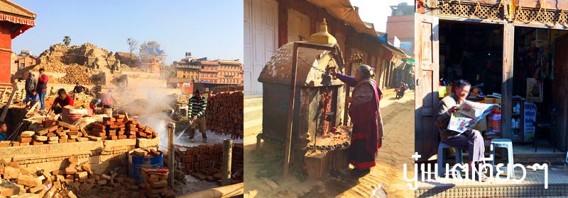 ออกจาก "Pottery Square" จุดหมายของเราต่อไปอยู่แถวที่พักของเราเองคือ "Bhaktapur Durbar Square" ตอนที่เดินเข้าไปแรกๆ จะเจอสิ่งก่อสร้างที่พังถล่มหักพังลงมาเยอะเหมือนกัน
