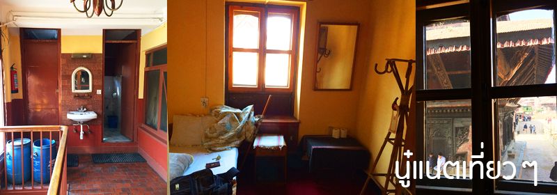 ที่พักในภัคตะปูร์ เรากับพี่จะพักแยกโรงแรมกัน เพราะพี่เขาสนใจโรงแรมหนึ่ง แต่เราดูราคาแล้วไม่แน่ใจ อยากได้ที่ถูกกว่า แต่ตอนที่จอง เราก็ไม่ทราบว่า 2 โรงแรมนี้ห่างกันแค่ไหน แต่ตอนเข้าเมืองมา โรงแรมของพี่เขาจะถึงก่อนของเรา ที่พักพี่เขาชื่อ "Peacock Guest House"