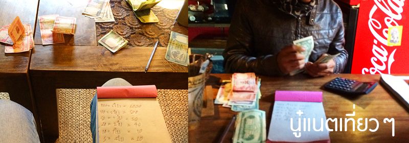 เดินกลับมาที่ "Peacock Guest House" พี่ก็แนะนำให้แลกเงินที่นี่เลย ไปแลกที่สนามบิน เรทจะแย่กว่า เราก็เลยเอาเงินมานั่งนับแล้วแลกเงินตามที่พี่แนะนำ
