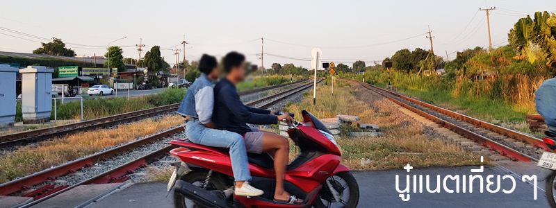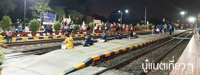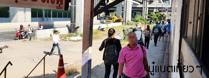 มีคนยืนรอ - นั่งรถอยู่บริเวณรางรถไฟมากมาย