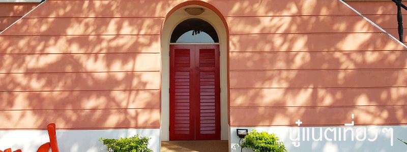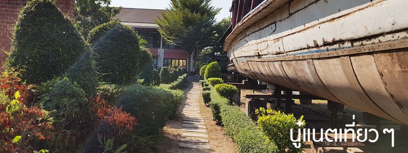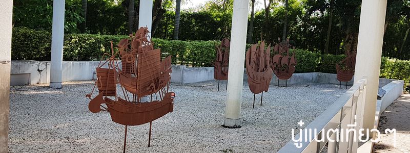 เดินเข้าไปแถวอาคาร...ด้านข้างๆ ก็มีของตกแต่งเป็นรูปเรือสำเภาแบบที่แล่นมาทำการค้าสมัยก่อน