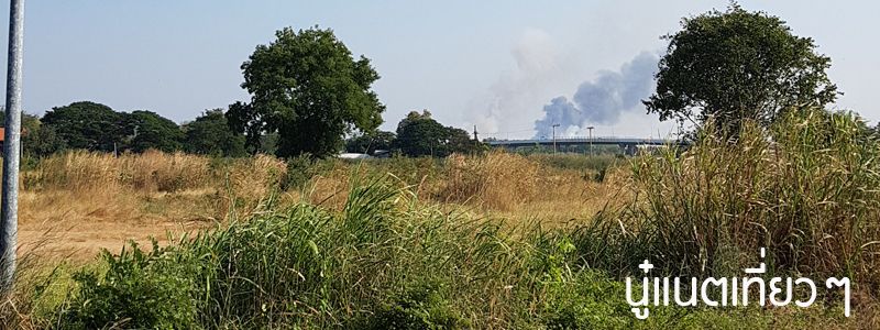 ระหว่างทางก็เห็นควันไฟสีดำและสีขาวอยู่ลิบๆ ทางฝั่งซ้ายมือ