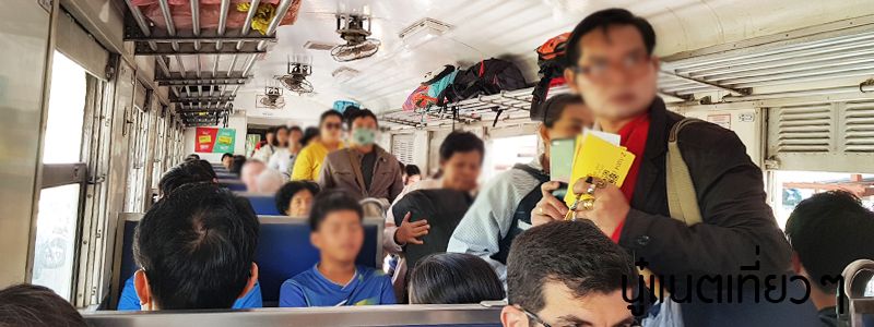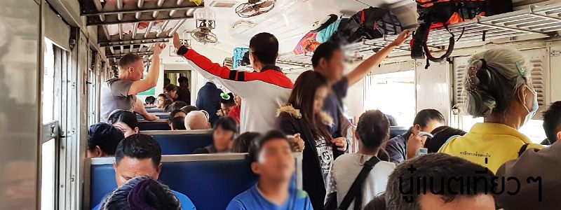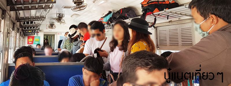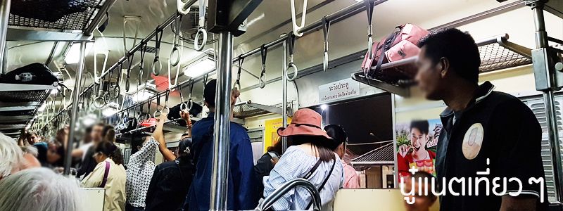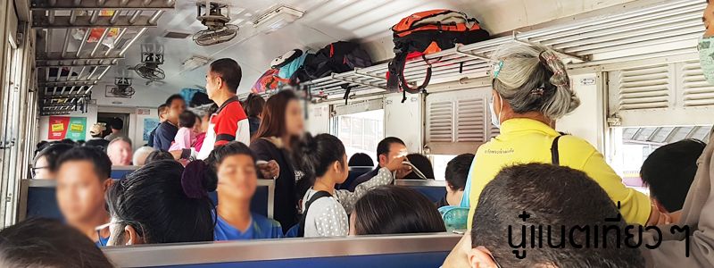 คนก็ยังทยอยเดินหาที่นั่ง...บางคนก็มาเป็นกรุ๊ปใหญ่หลายคน..แต่มาช้าที่นั่งก็ใกล้เต็ม...ใครได้นั่งก็ได้นั่ง...อยากยืนก็ยืน...เพราะเป็นโบกี้สุดท้ายที่มีที่นั่งแบบนี้...โบกี้หน้าถ้าไม่ใช่รถนอนก็ไว้วางสัมภาระ