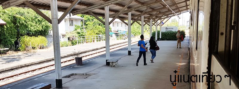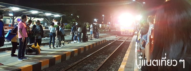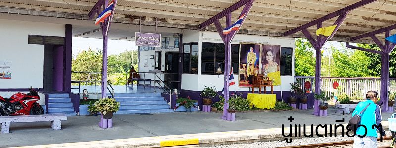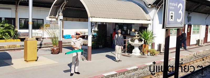 จอดรอรถไฟออกที่สถานีนี้นานเหมือนกัน...คนมาใหม่ที่มานั่งข้างๆ เราก็คุยกันเองเหมือนจะบอกว่ารถไฟคันนี้มาเร็วและจะออกจากสถานีนี้ตอน 10 โมงเช้า...ในใจเราก็คิดว่าก็ออกจากสถานีหัวลำโพงตามเวลานั่นแหละ...แต่ก็ไม่รู้ทำไมต้องมาจอดแช่อยู่สถานีนี้นาน...ตอนนั้นดูเวลาตามที่ได้ยินเขาคุยก็ประมาณอีก 9 นาที...นั่งรอไปเรื่อยๆ...นายสถานีก็ออกมาโบกธง....รถไฟอีกขบวนกำลังวิ่งเข้าสู่สถานี