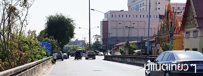 ข้างทางฝั่งซ้ายก็เป็นสะพานเหล็กที่มีรางรถไฟวิ่งผ่าน