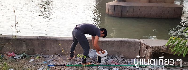 ตอนเดินผ่านมีคนยืนตกปลาอยู่....ก็ไม่ได้สนใจและไม่แน่ใจจะตกปลาได้มั้ย...แต่ปรากฏเขาตกปลาได้เอามาใส่ถัง...ปลาตัวไม่ใหญ่มาก...แต่ตอนเห็นปลาถ่ายภาพไม่ทัน
