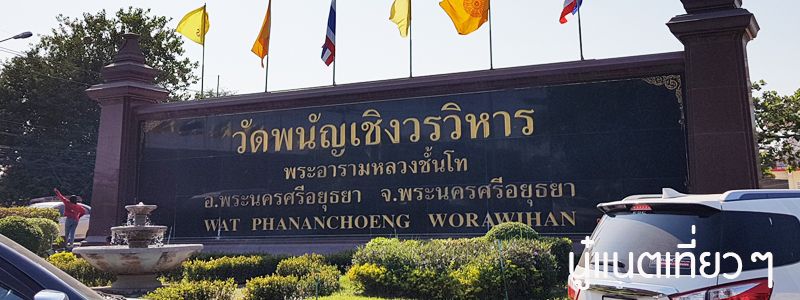 เดินข้ามฝั่งถนนไป...ก็ว่าจะไปถามทางคนแถวนั้น...เจอวินมอเตอร์ไซด์โบกมือเรียกลูกค้าเลยตัดสินใจเดินไปถามทางว่า "วัดพนัญเชิง" ไปทางไหนและไปอีกไกลมั้ย...วินก็บอกไปมอเตอร์ไซด์ 20 บาท...เราก็บอกคิดว่าแพงกว่านี้...วินก็บอกใครบอกแพง...สรุปถ้า 20 บาท...เราก็ซ้อนวินมอเตอร์ไซด์ไป "วัดพนัญเชิง"...ซึ่งระยะทางก็ไกลเหมือนกันและเป็นทางเลียบถนนที่รถวิ่งผ่านเยอะ...ระหว่างขับไป...คนขับก็ถามว่าไปไหนบ้าง...ไปไง...แบบจะเหมารถเขามั้ย...แต่เราบอกจะเดิน...ตอนรถวิ่งๆ ไปก็ผ่านคนยืนเหมือนรอรถ...คนขับก็ตะโกนบอกเดี๋ยวมารับ...เราก็ถามคนขับว่าวัดนี้ศักดิ์สิทธิ์ใช่มั้ย...คนขับก็บอกพระประธานเขาเรียก "หลวงพ่อซำปอกง"...ก็ศักดิ์สิทธิ์