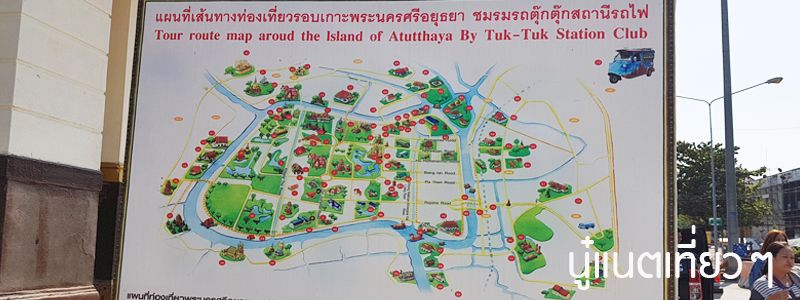 13.07 น. ถึงเวลาออกเดินทาง...ตรงแถวทางออกที่ไม่ใช่ทางออกหลักจะมีป้ายแผนที่เที่ยวอยุธยาที่แสดงสถานที่เที่ยวสำคัญเหมือนในแผนที่ที่เราได้มา