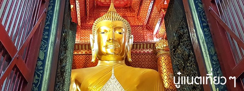 หน้าประตูเข้าโบสถ์จะเห็นองค์พระพุทธไตรรัตนนายกองค์ใหญ่สีทองอร่าม...มีคนยืนถ่ายภาพและเข้าออกเยอะเหมือนกัน