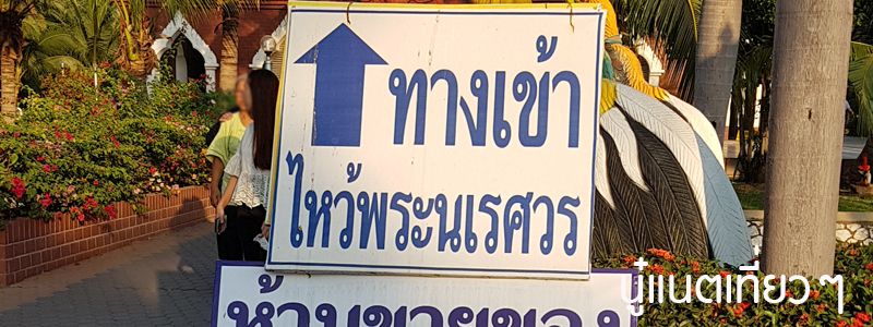 ตอนเดินลงจากสะพานข้ามคลองก็เห็นป้ายชี้ไปไหว้พระนเรศวรเลยตัดสินใจเดินเข้าไปไหว้ก่อน