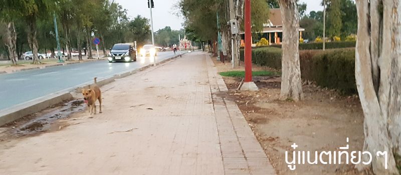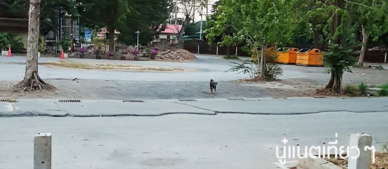เจอหมาจรจัดอีกตัว...ตอนแรกมันนอนกลิ้งใบไม้อยู่ฝั่งซ้ายมือเรา....แต่พอรถมา...มันก็เดิน...และเดินไปทางเดียวกับเรา....ตอนแรกมันเดินฝั่งซ้าย....เราเดินฝั่งขวา....พอมันมาเดินฝั่งขวา....เราก็เลยเปลี่ยนไปเดินฝั่งซ้ายแล้วมองมันเดิน...แบบจะเดินไปทางเดียวกันอีกนานมั้ย...คือกลัวมันนั่นแหละ...เพราะไอ้หมาบ้าที่ไล่เห่าเมื่อกี้ตัวเดียว....ปกติเจอๆ ก็เดินไปด้วยกันได้...แต่สุดท้ายมันก็หยุดริมบึง....เราก็เดินต่อไปเรื่อยๆ....รีบไปที่ถนนใหญ่