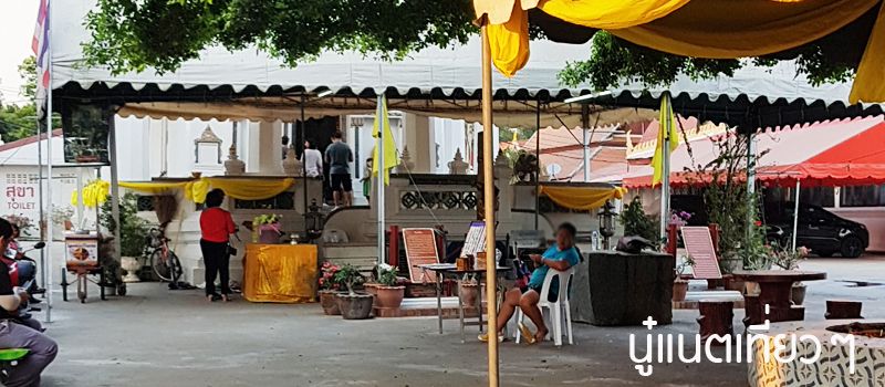 เดินไปทางซ้ายมือประมาณ 4 นาทีก็เห็นวัดธรรมิกราช