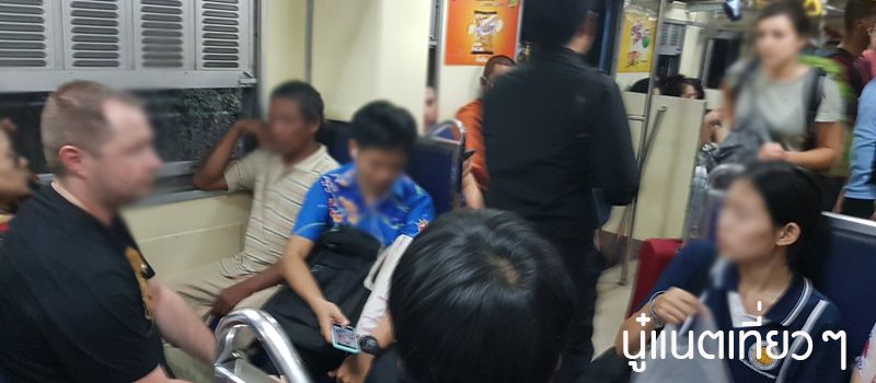 ตอนแรกขึ้นมานั่งก็ลังเลจะนั่งด้านไหนเพราะถ้าหันไปตามที่รถไฟจะวิ่งไปข้างหน้า...ต้องไปนั่งอีกฝั่ง..ก็กำลังจะลุกก็มีคุณป้าคนหนึ่งจะมานั่ง...เราเลยนั่งที่เก่า....คนก็ขึ้นเยอะ...ที่นั่งก็เต็มเร็ว...ก็ดีที่เรารีบมาหาที่นั่งก่อน