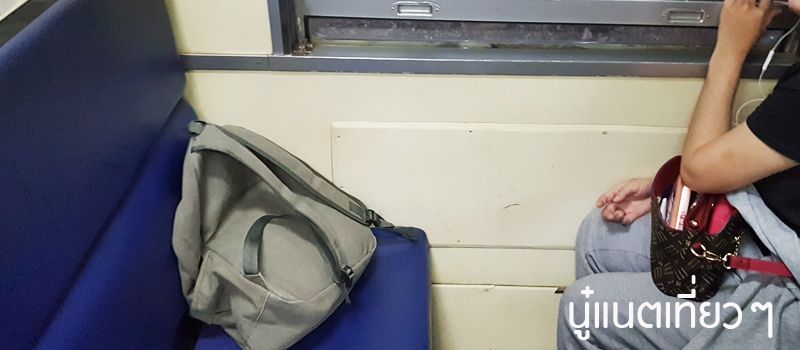 ระหว่างทางก็มีผู้หญิงอีกคนมานั่ง...ตอนแรกเราวางกระเป๋าไว้ฝั่งตรงข้าม...เขาก็ถามมีใครนั่งมั้ย...เราก็เลยเอากระเป๋าออกให้ แต่เขาก็บอกให้ผู้หญิงที่นั่งติดทางเดินขยับเข้าไปแบบเขาของเยอะ...แล้วเขาก็ลงที่ไหนสักแห่ง...ผู้หญิงฝั่งตรงข้ามเราก็เขยิบออกไปนั่งติดทางเดินเหมือนเดิมแล้วหลับ...ผู้หญิงที่นั่งข้างเรามาตั้งแต่หัวลำโพงก็วางเท้า...เพราะเขาบอกว่าปวดขา...เราก็อย่างไรก็ได้