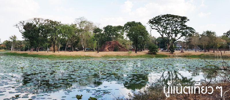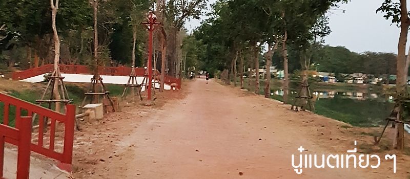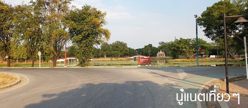 เดินมาถึงทางแยก...ฝั่งขวามือ...ถ้าเดินไปตามทาง...จะผ่านเข้าบริเวณบึงพระรามและพื้นที่รอบๆ วัดมหาธาตุ...ส่วนทางซ้ายมือจะตรงไปที่วัดธรรมิกราช