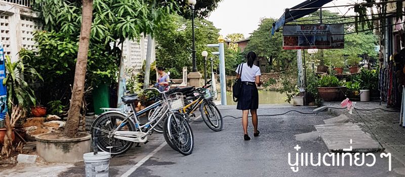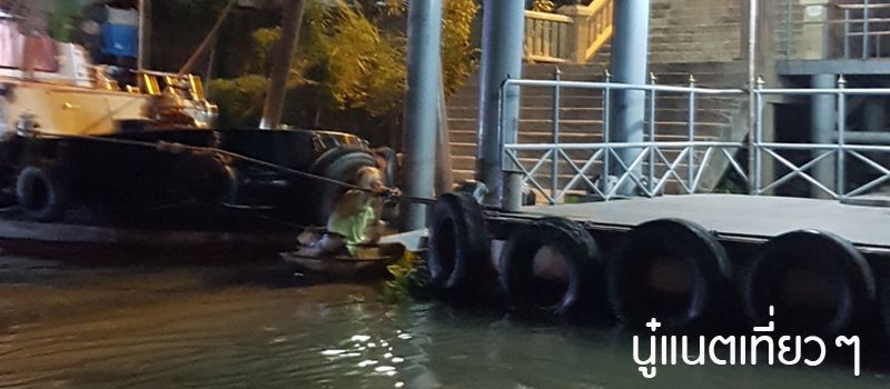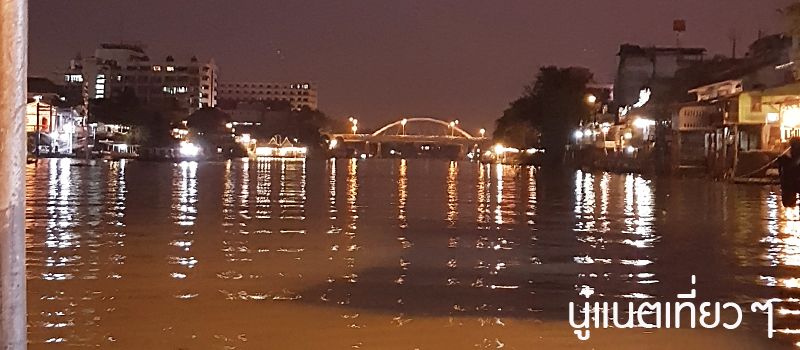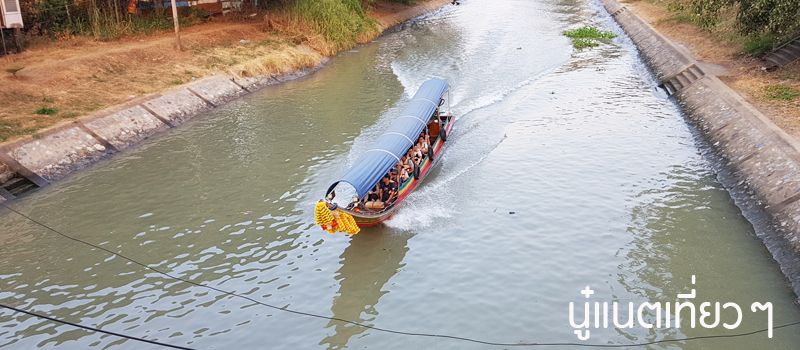 เดินข้ามสะพาน มองไปในคลองจะเห็นเรือหางยาววิ่งผ่าน
