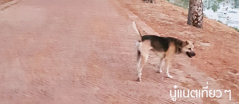 เดินไปตามทางเรื่อยๆ ก็เจอหมาตัวหนึ่งโผล่ออกมา...ก็ไม่ได้สนใจมากตอนแรกแค่ถ่ายภาพไว้แบบหมาโผล่จากพุ่มไม้...แต่เดินมาใกล้ๆ จะสังเกตมันทำหน้าตาน่าสงสาร...ก็เลยจะเดินเข้าไปใกล้ๆ