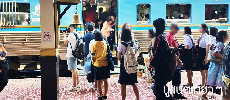 คนรอที่ชานชาลาที่ 1 เยอะเพราะรถไฟกำลังจะเข้าชานชาลา