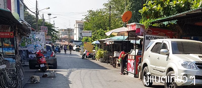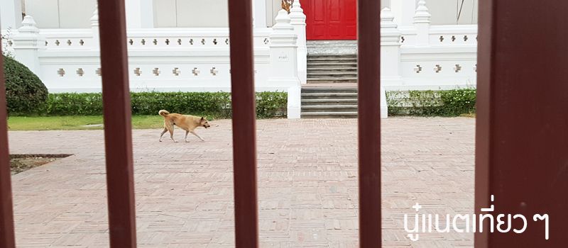 แต่ตอนที่เดินเข้าไป...ดันมีหมาอีกตัวเดินผ่าน...ก็เลยได้แค่ยืนอยู่แค่หน้าประตูแบบร้อนใจ....เพราะรถไฟออก 18.47 น. และต้องใช้เวลาเดินอีก 20 นาทีจากหน้าวัดมหาธาตุ....ซึ่งตอนนี้ 18.54 น. เรายังอยู่อยู่ตรงนี้....และจากตรงนี้ไปหน้าวัดมหาธาตุก็ต้องใช้เวลาเดินอีก