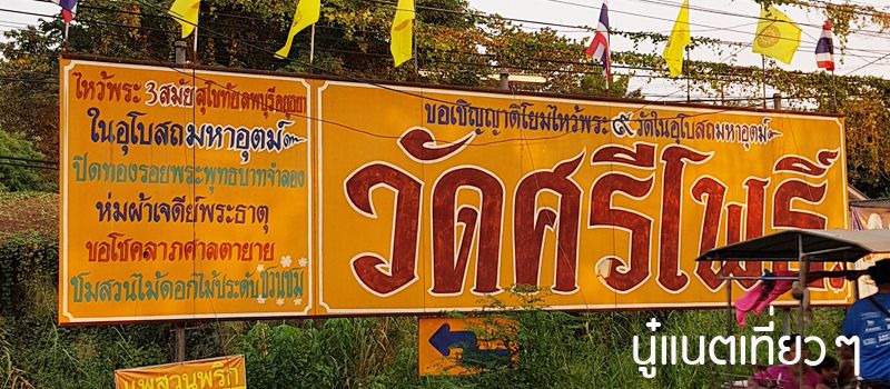 เดินออกมายืนหน้าวัด...เจอป้ายวัดศรีโพธิ์...เห็นมีอะไรเยอะ....แต่คงปิดแล้ว...ตอนนั้น 17.17 น.