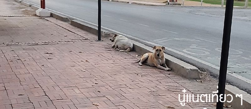 เดินมาจนถึง 3 แยกก็เจอหมาจรจัด....2 ตัว....ก็กลัว....เพราะฝังใจกับหมาบ้าที่ไล่เห่าเมื่อกี้....แต่มันก็นั่งมองเฉยๆ....ก็ดีแล้ว...ต่างคนต่างอยู่ไม่ต้องมาเห่ามาไล่...