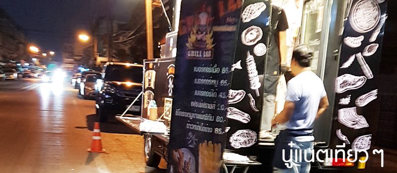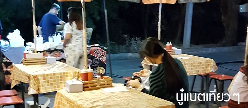 รถขายเบอร์เกอร์นี่เห็นตั้งแต่ตอนเดินไปวัดโบราณกลางแดดเปรี้ยงตอนมาครั้งที่แล้ว...ก็ส่องราคาอยู่...เดินผ่านอีกรอบก็ยังสนใจ...แต่ไม่มีเวลาทานต้องรีบเดินต่อไป ตอนนั้น 18.21 น.