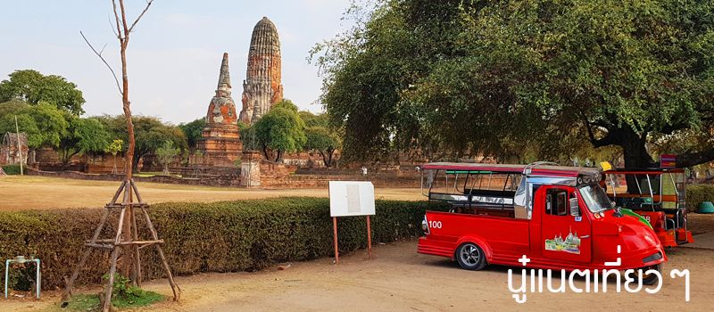 ตอนมาก็คิดเพราะครั้งที่แล้วก็มารถไฟขบวนนี้...ทำให้ไปวัดที่อยากไปไม่ทัน...เพราะเสียเวลาชาร์จแบตเป็นชั่วโมง...วันนี้ก็เลยคิดว่าถึงแค่บ่าย 2 โมงพอ...เพราะหลายวัดปิดตอน 5 โมงเย็นอย่างวัดมงคลบพิตรและวัดธรรมิกราช....สุดท้ายพอชาร์จแบตได้แค่ 58% ประมาณเกือบบ่าย 2 โมงก็ตัดสินใจออกเดินทางเพราะต้องทำเวลาด้วย...แต่ก่อนออกจากสถานีรถไฟ...ก็ไปห้องน้ำเพื่อเปลี่ยนเป็นกางเกงขายาวเพราะเข้าวัดที่นี่ต้องกางเกงขายาว....แล้วเราก็เดินไปหยิบกระดาษที่มีแผนที่จากจุดประชาสัมพันธ์เพื่อเอาไว้บังแดดและพัดแก้ร้อน...คือไม่ต้องใช้แผนที่เหมือน 3 ครั้งแรกแล้ว...เอาแค่เดินๆ เอาตามที่อยากไปแค่นั้นพอ...ส่วนจักรยานไม่ปั่นเพราะไม่อยากเสีย 50 บาทและไม่อยากปั่นออกถนนใหญ่