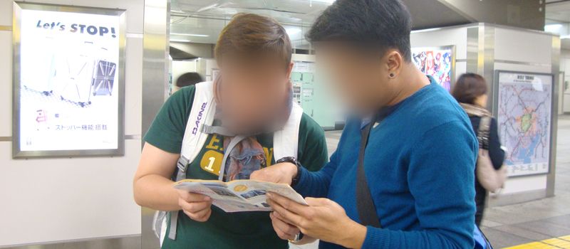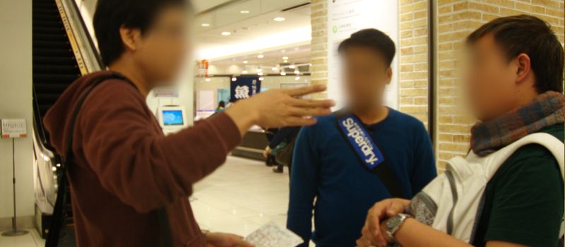 เมื่อไปผิดที่...เราเลยหาคนถามทางใหม่เพราะเราต้องการไปร้านหนังสือชื่อ "Kinokuniya"...ก็มีคนบอกมาเหมือนเราต้องนั่งรถไฟใต้ดินไปลงที่สถานีอื่น.....ตอนเดินไปถึงที่สถานีรถไฟใต้ดินก็งง...เพราะเส้นทางบนแผนที่รถไฟมันเยอะมากๆ...พอดีเจอน้องผู้หญิงคนหนึ่งเลยเข้าไปถาม...เขาก็ช่วยดูแผนที่การเดินทางของรถไฟให้ว่าจะไปลงสถานีไหนได้....แต่ระหว่างนั้นก็มีผู้หญิงอีกคนเข้ามาช่วย..ปรากฏไปลงสถานีเดียวกัน...พวกเราก็เลยนั่งรถไฟไปลงที่เดียวกัน...พอมาถึงก็ช่วยถามคนแถวนั้นว่าร้านหนังสือไปชั้นไหน....ซึ่งร้านหนังสือต้องขึ้นลิฟต์ไปอีก...ก่อนแยกจากกัน...เราก็เลยขอเขาถ่ายภาพเป็นที่ระลึกและขอบคุณเขาที่ช่วย..