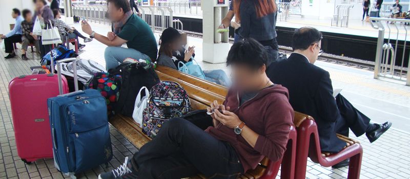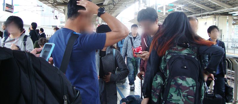 หลังได้ตั๋วก็ไปยืนรอรถไฟกัน ก็รอนานมากเหมือนกัน บางคนก็ไปหาซื้อข้าวกล่องเพื่อไปกินบนรถไฟแต่เราไม่มีเงินก็เลยไม่ได้จะซื้อไรกิน กะไปกินที่โตเกียวเลย