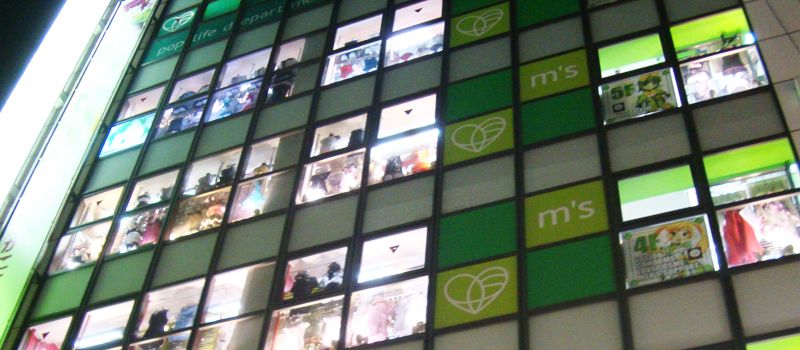 เดินตามพวกพี่มาถึงตึกสูงตึกหนึ่ง มองขึ้นไปเห็นมีหุ่นใส่ชุดการ์ตูนญี่ปุ่น ก็คิดว่าขายพวกชุด Mascot หรือพวกชุดการ์ตูน เพราะญี่ปุ่นก็ขึ้นชื่อเรื่องการ์ตูน...แต่ตอนจะขึ้นไป...เหมือนพี่คนนึงจะถามว่าจะขึ้นไปเหรอ เราก็งงๆ แต่ก็เดินตามขึ้นไป..ก็เลยรู้ว่าที่นี่เขาขายอะไร