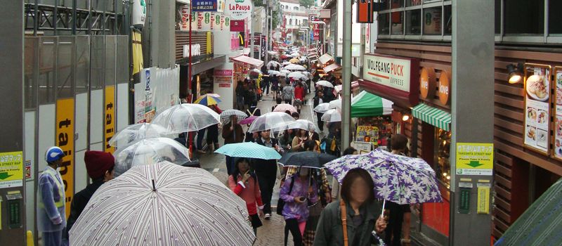 เดินทางมาถึงน่าจะเป็น..."ฮาราจูกุ"....เพราะฝนตกปรอยๆ.....มีแต่คนถือร่มเต็มถนนไปหมด