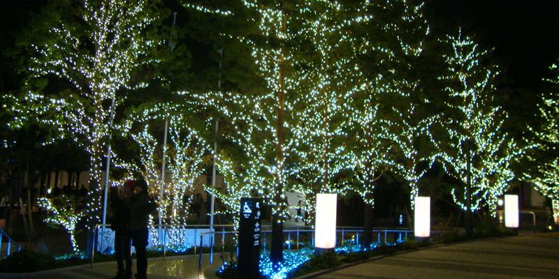ออกมาด้านนอกอีกครั้ง แสงไฟตามต้นไม้และบันไดสวยๆ ช่วงหน้าหนาว