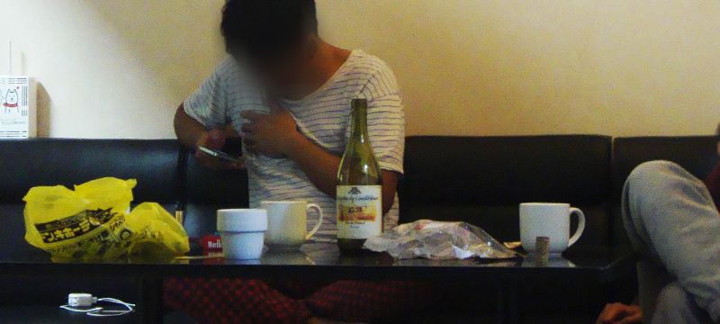 ตอนเรากลับโรงแรมและขึ้นห้อง....ก็เดินไปเก็บของบนห้องก็ลงมาด้านล่างที่พวกพี่นั่งสังสรรค์กันอยู่....พี่เต๋าก็ให้เราช่วยไปซื้อเหล้าหรือเบียร์ให้หน่อย....ซึ่งถ้าเดินออกไปจากที่พัก....แล้วไปที่สะพานลอย...ฝั่งตรงข้ามสะพานลอยจะมีร้านค้าที่ขายของถูกๆ อยู่...คือก่อนไป....พี่เขาก็บอกมาว่าจะเอาขวดแบบไหน แต่หลายปีแล้วจำไม่ได้...แต่น่าจะเป็นขวดแบบเดิมที่พี่เขาเคยซื้อและอาจวางบนโต๊ะแต่หมด....ครั้งแรก เราไป...บนชั้นจะมีขวดเบียร์หรือเหล้าวางรวมกันหลายขวดหลายแบบ...แบบมันถูกไง...ก็เลยวางๆ รวมกัน...แต่เราหาขวดแบบที่พี่เขาต้องการไม่เจอ....ก็เลยเดินกลับมาบอกพวกพี่ว่า....ขวดแบบที่พี่เขาจะเอามันไม่มี...พี่เขาเลยบอกให้เอาขวดไหนก็ได้...เราเลยเดินเข้าไปรอบที่ 2..และเลือกมาให้พวกพี่เขาขวดนึง....เราอ่ะก็ไม่ได้ดื่ม...แต่ก็นั่งคุยๆ กัน...ตรงชั้นล่างนั่นแหละ....คุยกับสักพักก็แยกย้ายขึ้นห้อง