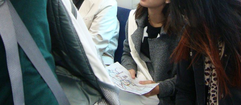 ตอนมาถึงเขตเมือง ไม่แน่ใจลงสถานีไหนก็เลยมองหาว่าคนอื่นๆ อยู่โบกี้ไหน ไม่แน่ใจว่าควรเดินไปโบกี้ด้านหน้าหรือด้านหลังก็เลยลองเดินไปโบกี้หลังๆ ก็เจอคนอื่นๆ นั่งอยู่ ก็ลองถามพี่เต๋าว่าต้องลงสถานีไหน เขาก็บอกมา แล้วเราก็เดินกลับไปนั่งที่เพื่อรอลงสถานีที่เราจะลง