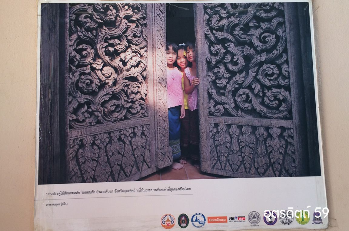 ปั่นจักรยานตามทางกันไปในแผนที่เรื่อยๆ ตอนนี้เราปั่นตามเพื่อนทันมากขึ้น สงสัยตอนเช้ายังไม่มีสติเต็มที่ สุดท้ายก็มาถึง "วัดดอนสัก" กันจนได้ ตอนแรกก็หาโบสถ์ที่มีประตูแบบนี้ไม่เจอ จนพระมาถามว่ามาทำอะไรกัน พวกเราเลยถามหาประตูบานนี้ออกไปจึงได้รู้ว่า ประตูนี้อยู่ที่โบสถ์เก่าที่ต้องเข้าไปอีกนิดนึง ซึ่งเป็นโบสถ์เก่าจริง แต่สวยมาก คือมาเมืองลับแลทั้งที ไม่ได้มาชมโบสถ์นี้คงเสียดายมาก