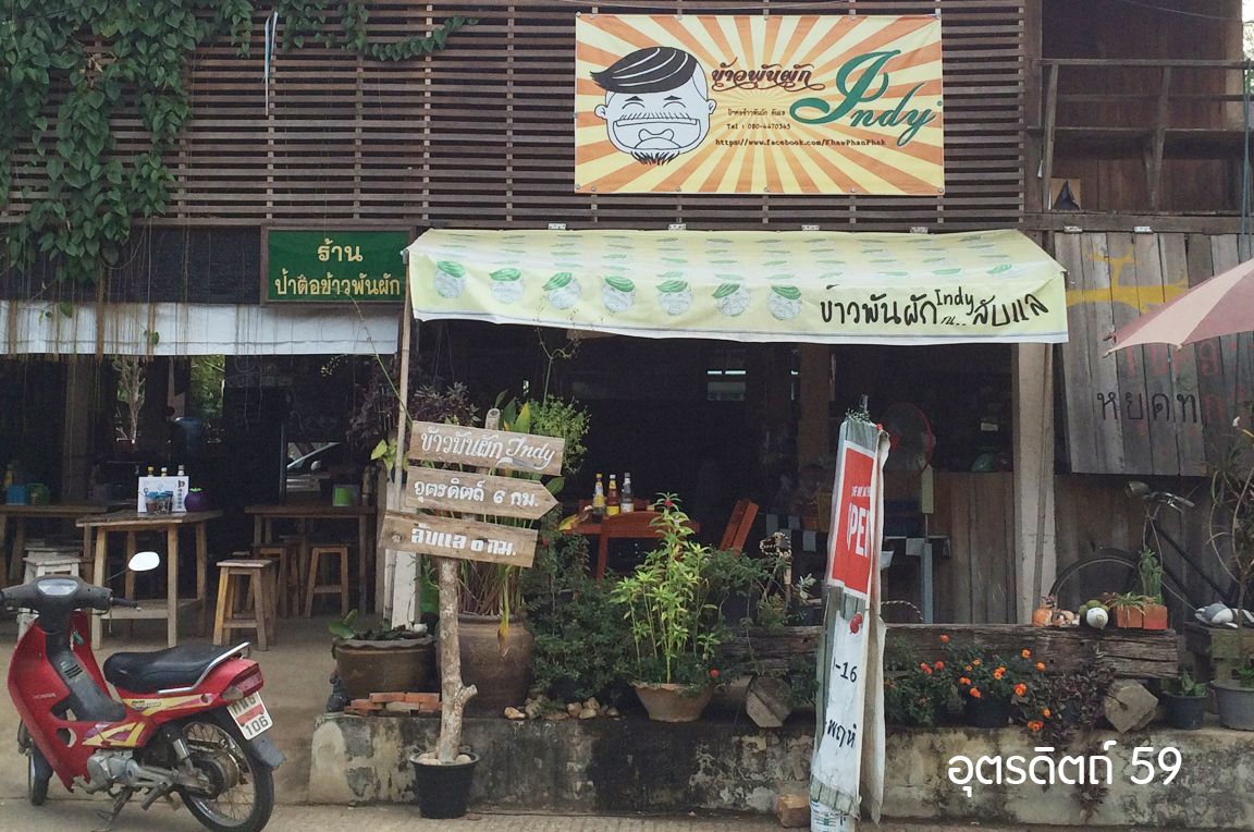 ซึ่งพอเราบอกเพื่อนว่าอยากไปที่นี่นะ ไม่น่าไกล สุดท้ายเราก็ตกลงไปที่นี่กัน แต่ก่อนไปก็ต้องหาของทานกันก่อน เพื่อนก็บอกอ่านรีวิวมาและพาเราไปที่ร้าน "ข้าวพันผัก" ที่อยู่ไม่ไกลจากที่พักเลย ปั่นจักรยานไปแป๊ปเดียว แต่เพราะเราจะรีบไปวัดกัน เพื่อนเลยบอกไว้กลับมาค่อยมาทานก่อนกลับก็ได้ เราก็ตกลง