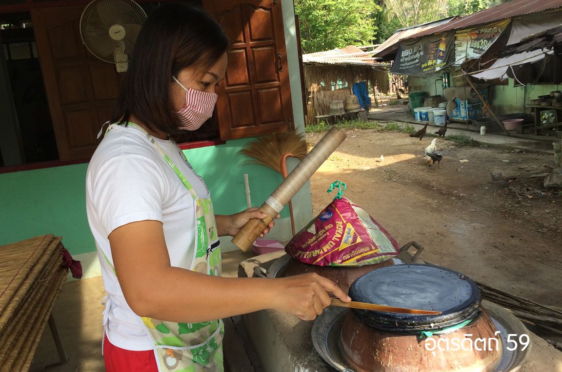 ถ่ายภาพกันจนพอใจเพราะไม่รู้ว่าจะได้กลับมาที่นี่อีกไหม ก็ปั่นจักรยานกลับกัน แต่ระหว่างทางเพื่อนก็เห็นร้านทำขนมหนึ่ง ซึ่งเจ้าของร้านกำลังทำขนมอยู่บนเตาหน้าบ้าน เพื่อนเลยจอดจักรยานถ่ายภาพ เราเลยจอดบ้างและถ่ายภาพการทำขนมเก็บไว้เป็นที่ระลึก