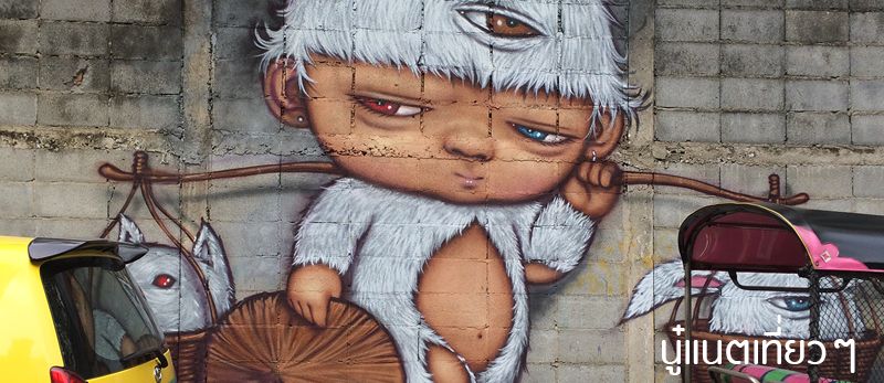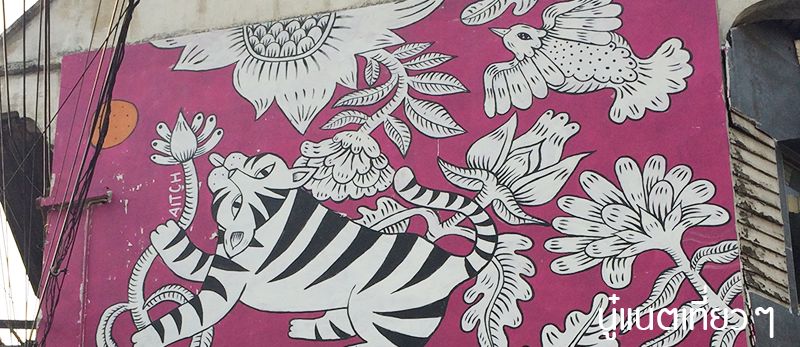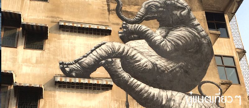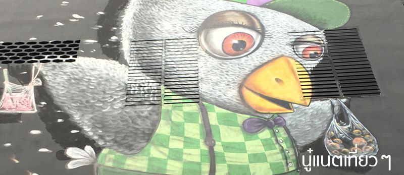 เราก็ถามทางคนแถวนั้นเพราะภาพ "Street Art" จากโครงการ "บุกรุก" อีก 2 แห่งอยู่ที่ "ลานตู้เหลือง" และแถว "วัดปทุมคงคา" ซึ่งเดินแป๊ปเดียวเราก็มาถึง "วัดปทุมคงคา" ซึ่งตอนแรกเราหาไม่เจอตอนมาถึงประตูวัดอันแรก มองไปรอบๆ เลยเห็นผลงาน "Street Art" จากที่ไกลๆ แปลว่ามาถูกทางแล้ว
