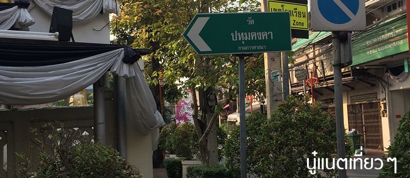 แต่ป้ายบอกทางก็บอกแค่นั้น แค่เดินมาไม่ถึง 5 นาทีก็เจอ 4 แยก แยกที่เราเดินมาไม่ใช่ก็เหลืออีก 3 แยก เลยถามคนขายก๋วยเตี๋ยวแถวนั้นเขาก็ชี้ทางขวามือเรา พอเราจะเดินไป คนที่ทานก๋วยเตี่๋ยวอยู่เหมือนทานเสร็จพอดีก็มาเรียกเราไว้ว่าจะไปไหน เราก็งงว่าเขาต้องการไรหรือเปล่า แบบเป็นคนขับรถพวกแท๊กซี่, ตุ๊กตุ๊ก ไหมแบบหาลูกค้า เราก็อ้ำอึ้ง เขาเลยถามย้ำ เราเลยบอกไปหัวลำโพง เขาเลยชี้ทางให้เราว่าเจอวัดข้างหน้าให้เลี้ยวซ้ายไป เราเลยขอบคุณความมีน้ำใจของเขาไปที่อุตส่าห์มาช่วยบอกเรา แต่ความจริงเราเดาไม่น่าผิด วัดข้างหน้าเราน่าจะเป็น "วัดไตรมิตร"