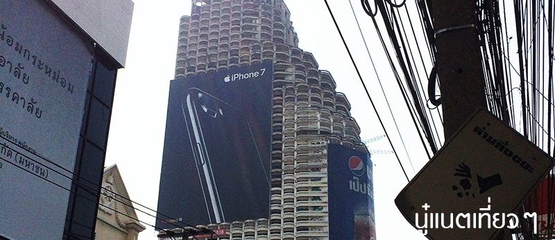 แต่ที่น่าสนใจกว่านั้นคือขณะที่เราคิดว่าตึกสูงๆ ข้างหน้าคือตึก "AIA" แต่ตัวโลโก้ตึกอาจถูกบังอยู่ แต่พอตอนที่เราหันข้างไปทางด้านหลังของร้านที่เราสนใจถ่ายภาพอยู่เรากลับเห็นตึก "AIA" อยู่ทางด้านหลัง