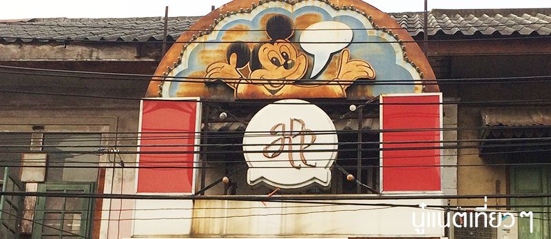 เดินไปเรื่อยๆ ถามทางเขาไป จนมาเจอป้ายชี้ไป "หัวลำโพง" เลยข้ามฝั่งไปถ่ายรูปป้ายแต่ตอนหันกลับมากลับเจอป้ายมิกกี้เม้าส์ คือแบบเก่าแล้วแหละ แต่ถ้าเราไม่ข้ามฝั่งมาฝั่งนี้เราก็จะไม่เห็นป้ายมิกกี้เม้าส์นี้ เพราะมันอยู่เหนือศรีษะเรา