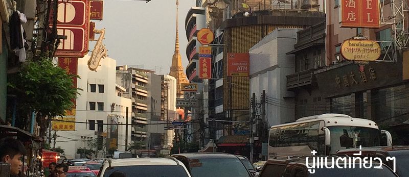 เดินเข้าซอยเล็กๆ ไปเรื่อยๆ ก็มาโผล่ที่เยาวราช คนเยอะมาก รถก็เยอะ และเดินรถทางเดียวด้วย ตอนแรกเราเดินไปเรื่อยๆ ไม่รีบไร แต่เดินมากๆ สะสมมา 5 - 6 ชั่วโมงแทบไม่ได้พัก เลยหาทางกลับก็มีรถเมล์สาย 1 ผ่านมา แต่พอเราถามถึง "หัวลำโพง" เขาบอกให้เราไปอีกด้าน ซึ่งรถก็มีแค่วิ่งทางเดียว สรุปคือเดินอย่างเดียวเท่านั้น
