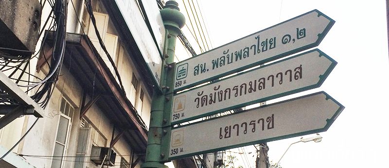 เดินหาทางกลับบ้านไปเรื่อยๆ ก็มาเจอป้ายชี้ทางไปเยาวราชและวัดมังกร เพราะปกติมาเยาวราชจะมาเพราะต้องการมาวัดมังกร เห็นแบบนี้ก็ข้ามฝั่งและเดินไปตามทางที่บอกเลย