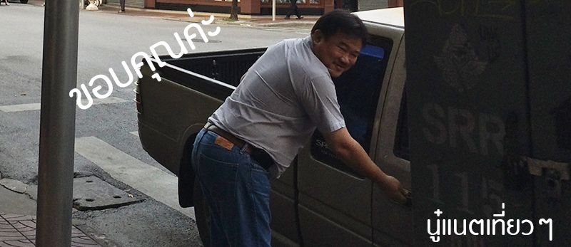 ความจริงตอนถ่ายภาพเขา คือเราอยากเก็บเป็นที่ระลึกนะว่าเขามาช่วยบอกทางเรา แต่เราก็กลัวเขาว่าว่ามาถ่ายภาพเขาทำไม เราเลยเหมือนถ่ายภาพเขาแหละและถ่ายอย่างอื่นด้วย แต่พอมาดูภาพปรับแสงเลยเห็นว่าเขายิ้มให้เรา เลยทำเรารู้สึกผิดมาก เพราะตอนนั้นกล้องมือถือเรามืดและเรากลัวเขารู้ว่าเราถ่ายภาพเขาแล้วอาจไม่พอใจ เลยไม่เห็นเขายิ้มให้เรา ไม่งั้นเราต้องยิ้มและขอบคุณเขาอีกแน่ๆ ตอนนี้เอารูปมาดู รู้สึกผิดมากเลยที่ไม่ได้ยิ้มขอบคุณเขาอีกครั้งเพราะมันมืด เราไม่เห็นจริงๆ ตอนนั้น