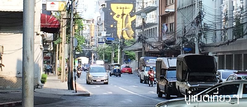 ตามคำบอกของคนที่ไปถามเขา เขาบอกว่าจะเจอวัดปทุมคงคาก่อน เลยเดินต่อไป ซึ่งกลายเป็นมี 2 ทาง แต่ตัดสินใจไปทางที่รถวิ่งไปซึ่งน่าจะเป็นถนนหลัก ตอนแรกว่าจะข้ามฝั่งไปถามคนฝั่งตรงข้ามว่าจะหา "ลานตู้เหลือง" ได้ที่ไหน แต่ไม่ต้องถามเพราะภาพ "Street Art" เห็นได้จากที่ไกลเมื่อมายืนอยู่ตรงถนนเส้นนี้